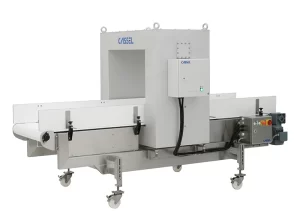 The METAL SHARK® BIG with its rectangular tunnel is specifically designed for large items such as logs, bales and recycled wood. Thanks to its robust design, it is particularly suitable for industrial use on rough terrain commonly found in places such as timber yards. It is typically installed with a flat-belt trough conveyor or with a specially prepared vibrating feeder. Using 3D detection technology, it detects magnetic and non-magnetic metal contaminants (iron, stainless steel, aluminum etc.) accurately and reliably even in challenging conditions.